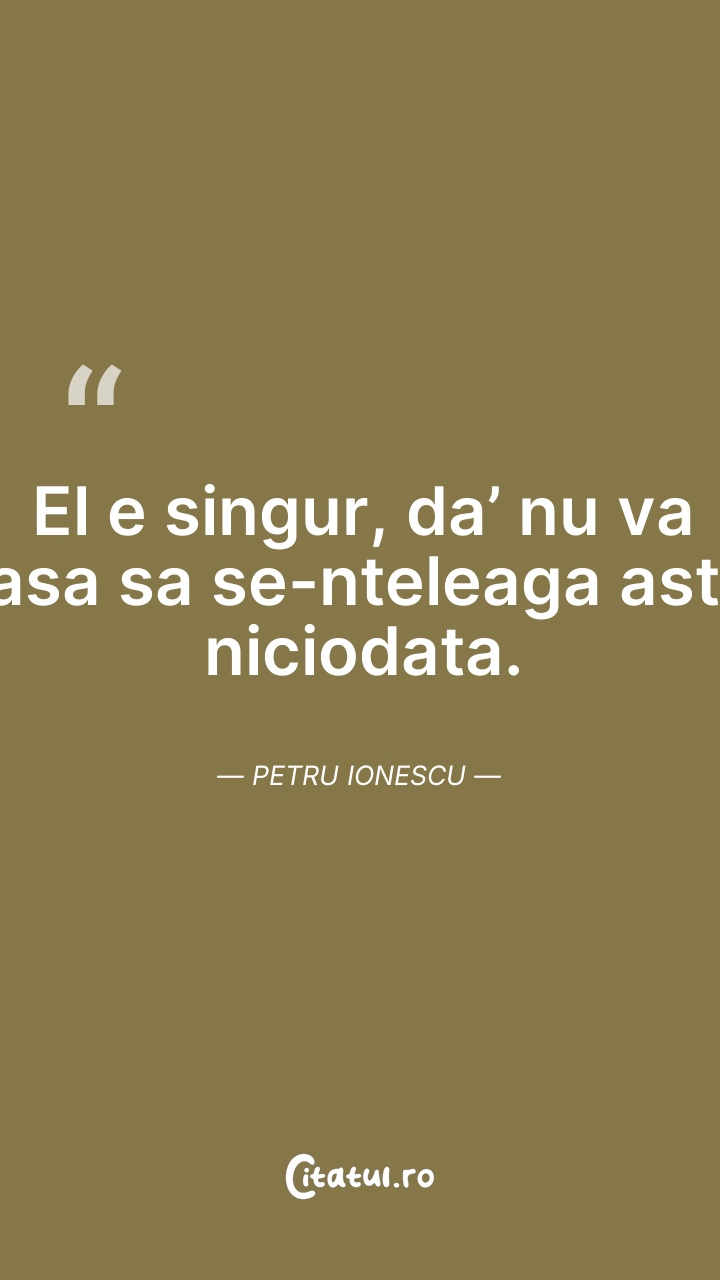 El e singur, da’ nu va lasa sa se-nteleaga as ... Citește tot citatul >