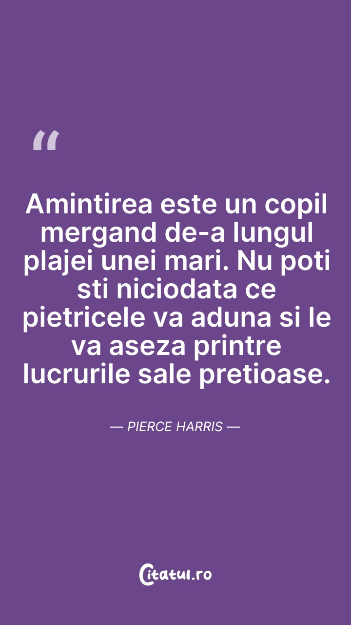 Amintirea este un copil mergand de-a lungul p ... Citește tot citatul >