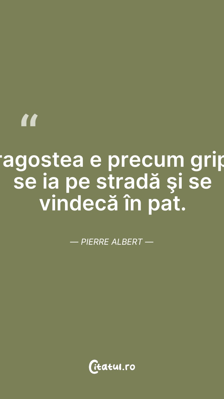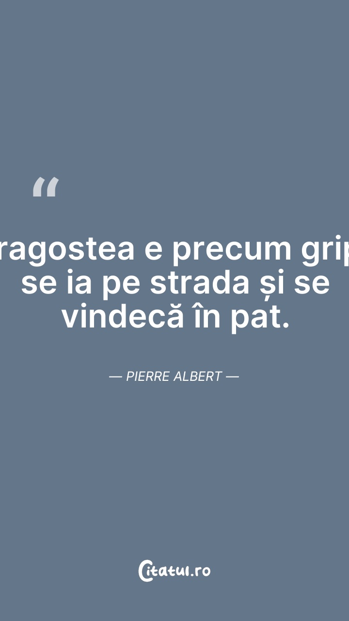 Dragostea e precum gripa se ia pe strada și s ... Citește tot citatul >