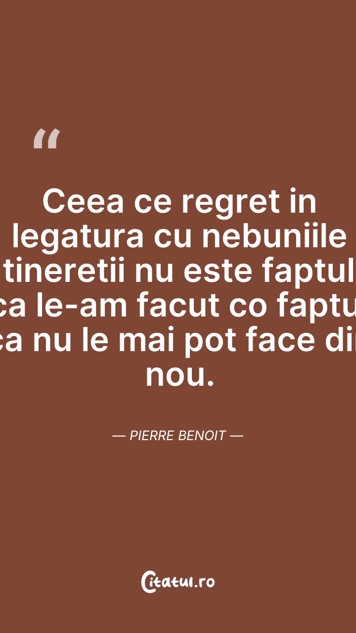 Despre prostiile tinereţii mele, ceea ce regr ... Citește tot citatul >