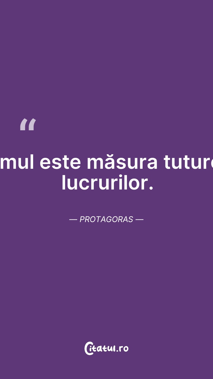 Omul este măsura tuturor lucrurilor. Protagor ... Citește tot citatul >