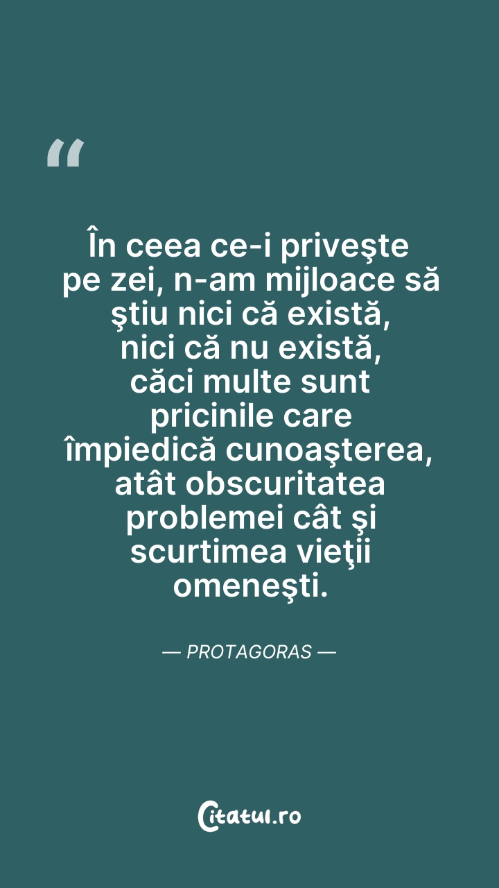 În ceea ce-i priveşte pe zei, n-am mijloace s ... Citește tot citatul >