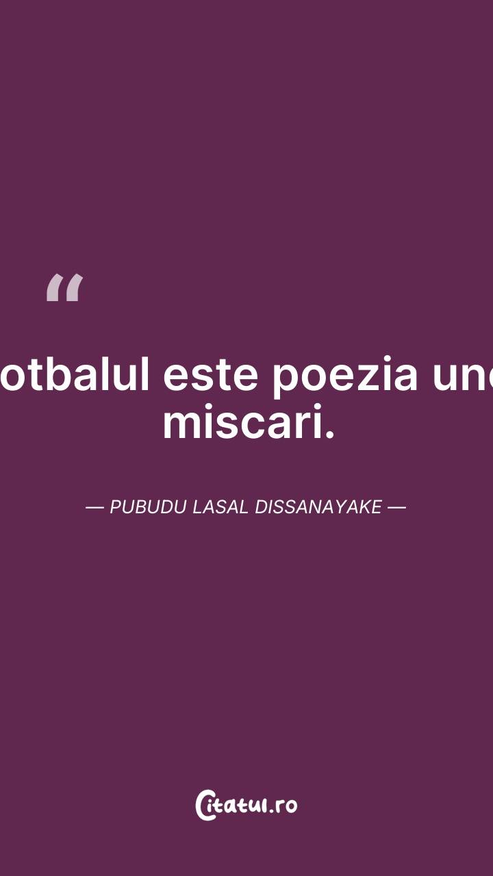 Fotbalul este poezia unei miscari. Pubudu Las ... Citește tot citatul >