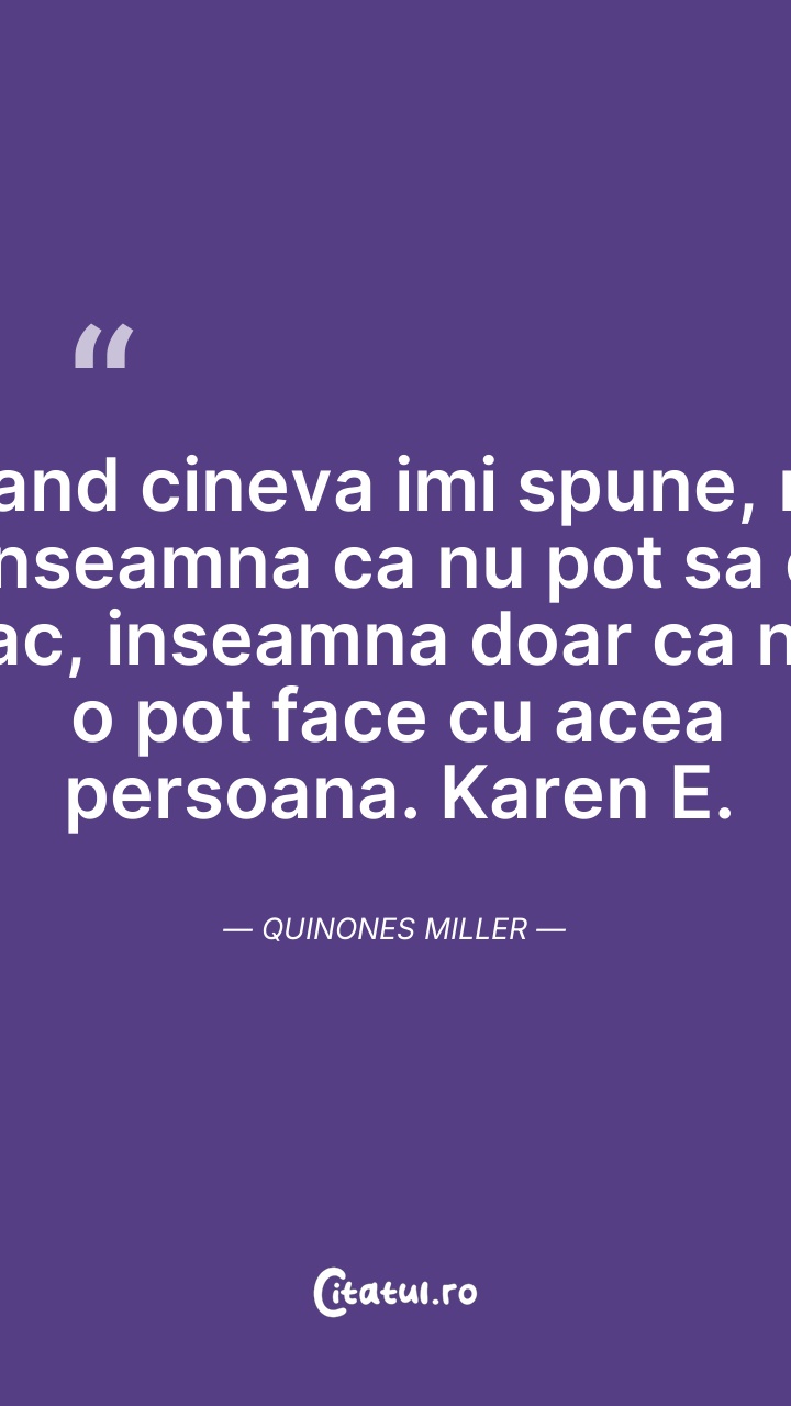 Cand cineva imi spune, nu inseamna ca nu pot ... Citește tot citatul >