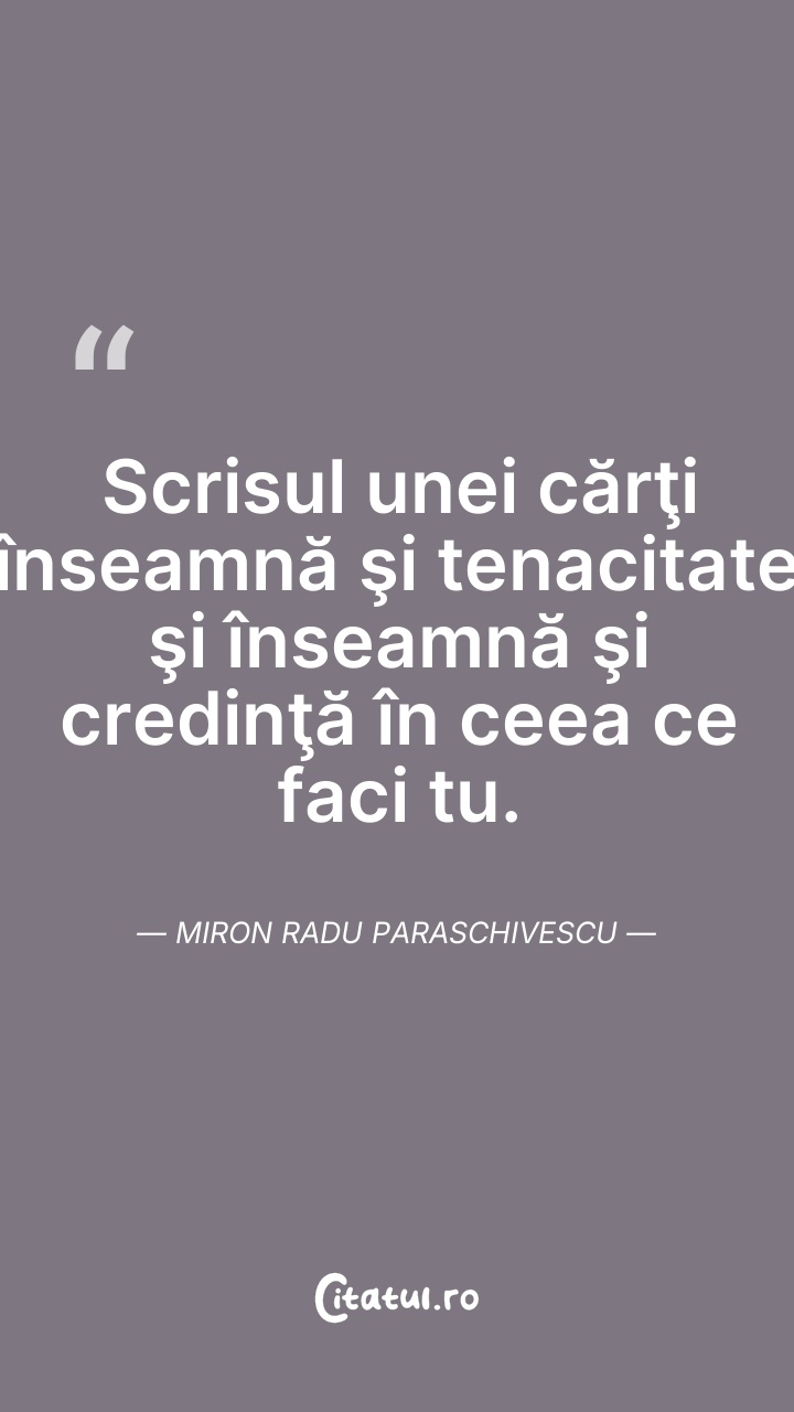 Scrisul unei cărţi înseamnă şi tenacitate şi ... Citește tot citatul >