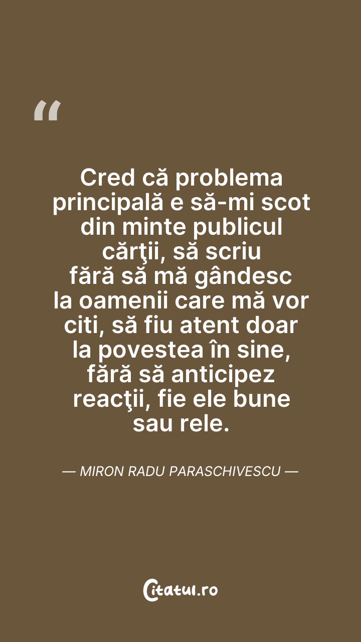 Cred că problema principală e să-mi scot din ... Citește tot citatul >