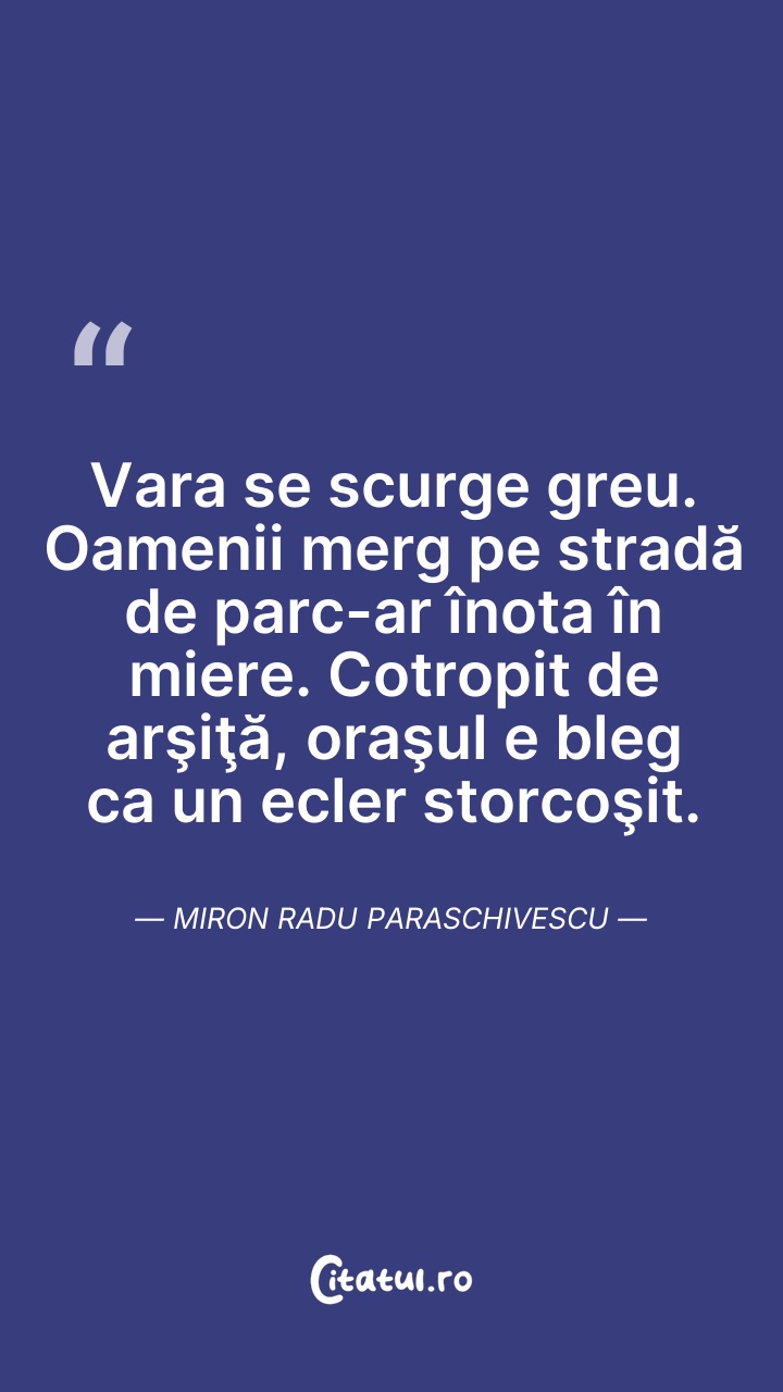 Vara se scurge greu. Oamenii merg pe stradă d ... Citește tot citatul >