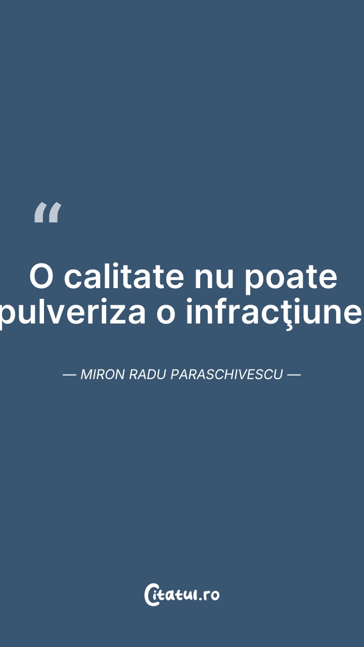 O calitate nu poate pulveriza o infracţiune. ... Citește tot citatul >