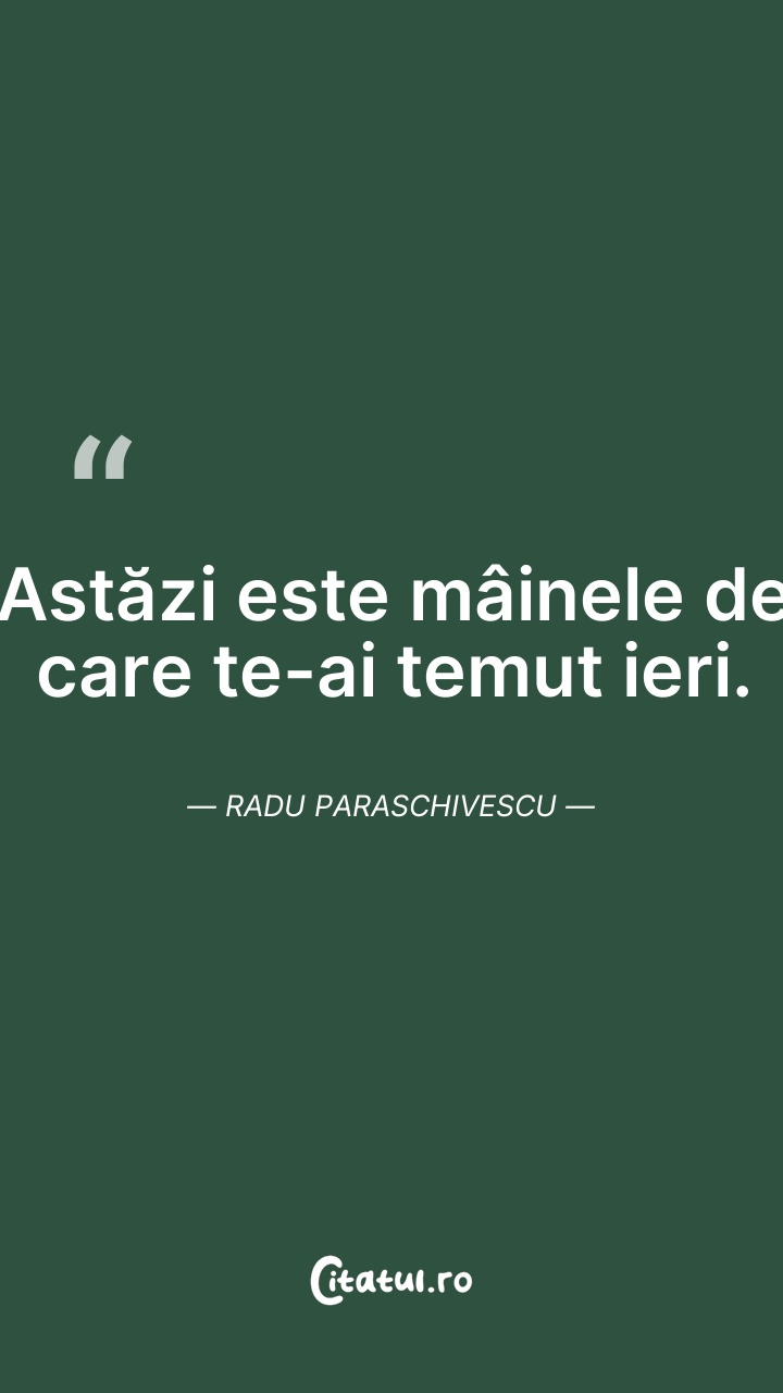 Astăzi este mâinele de care te-ai temut ieri. ... Citește tot citatul >
