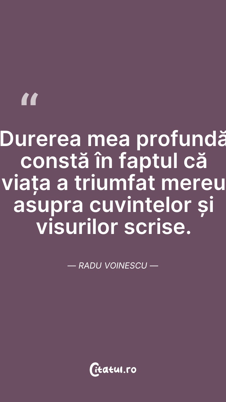 Durerea mea profundă constă în faptul că viaț ... Citește tot citatul >