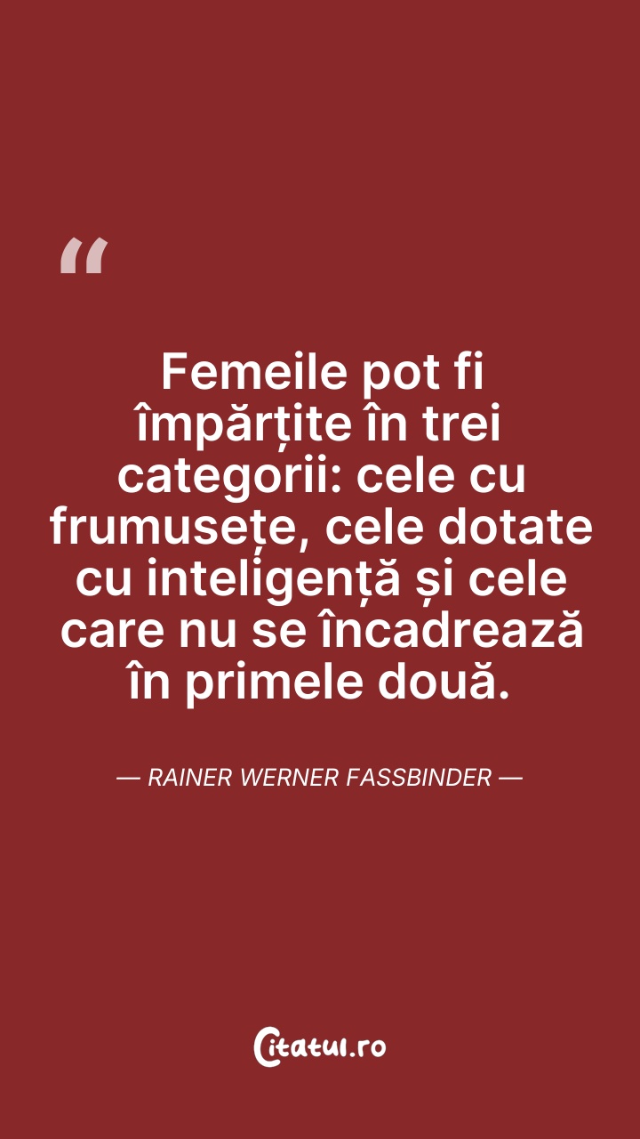 Femeile pot fi împărțite în trei categorii: c ... Citește tot citatul >
