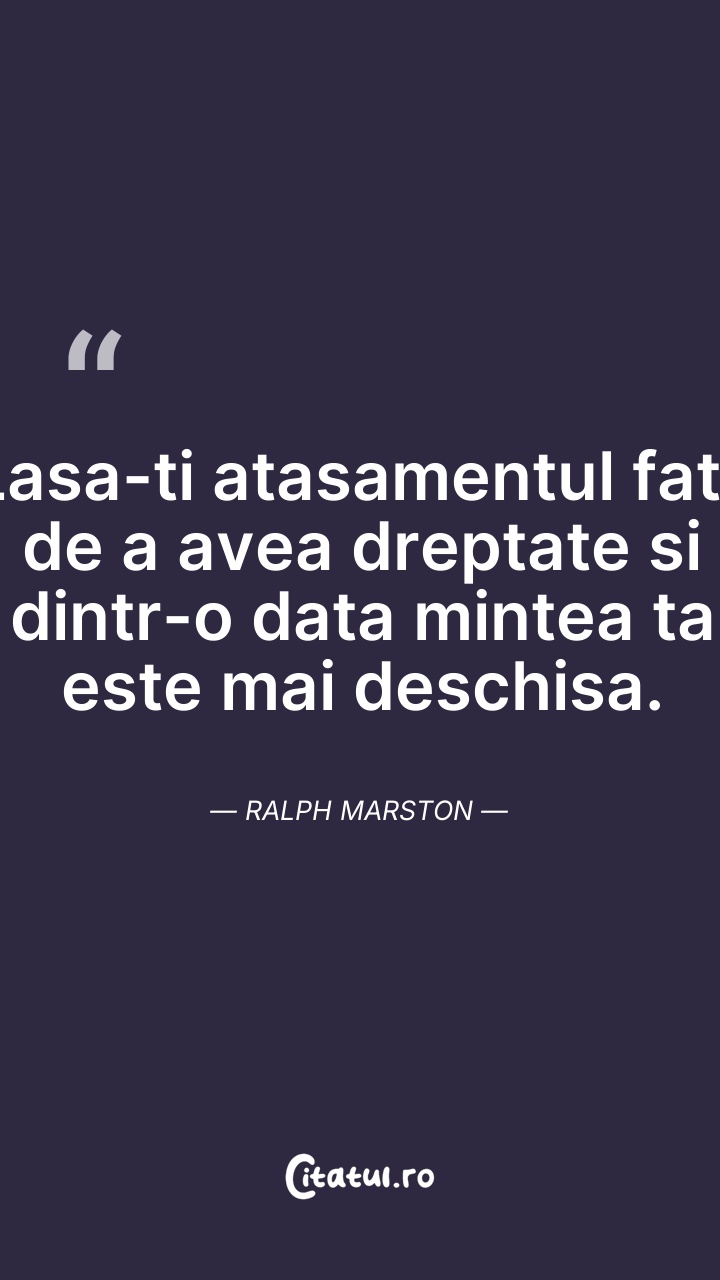 Lasa-ti atasamentul fata de a avea dreptate s ... Citește tot citatul >
