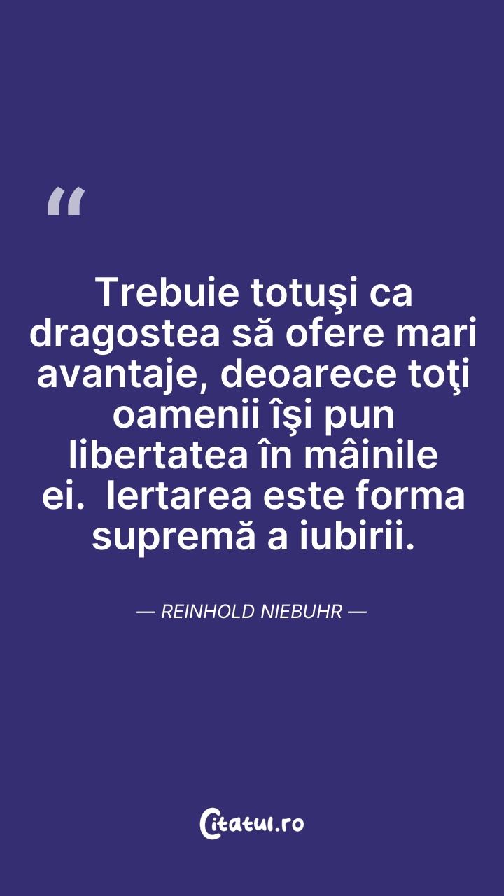Iertarea este forma suprema a iubirii. Reinho ... Citește tot citatul >