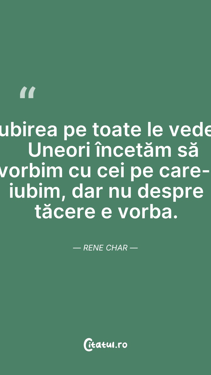 Iubirea pe toate le vede. Uneori încetăm s ... Citește tot citatul >