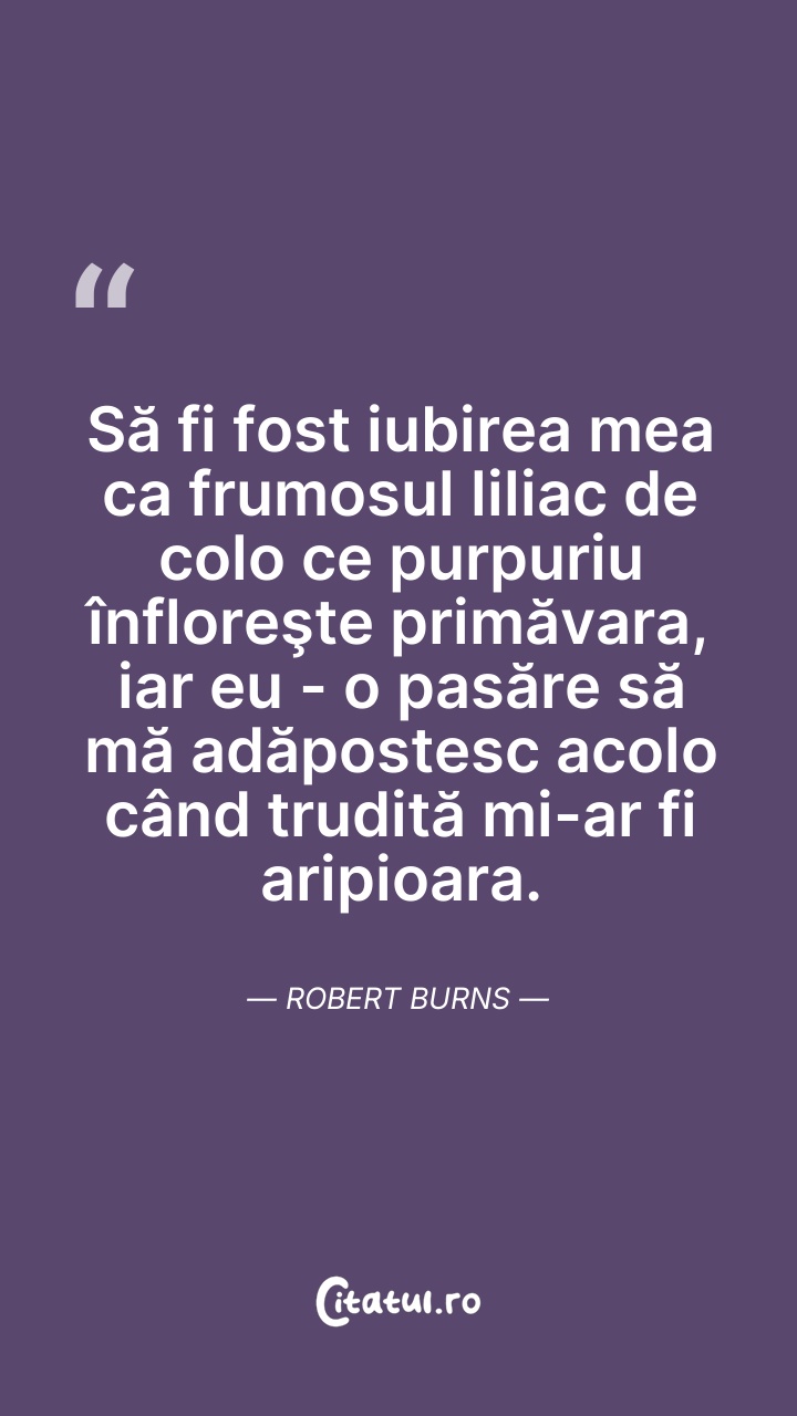 Să fi fost iubirea mea ca frumosul liliac de ... Citește tot citatul >