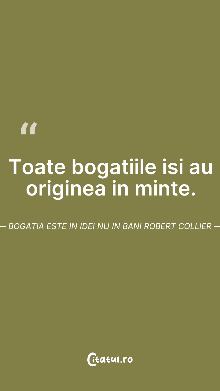 Toate bogatiile isi au originea in minte. Bog ... Citește tot citatul >