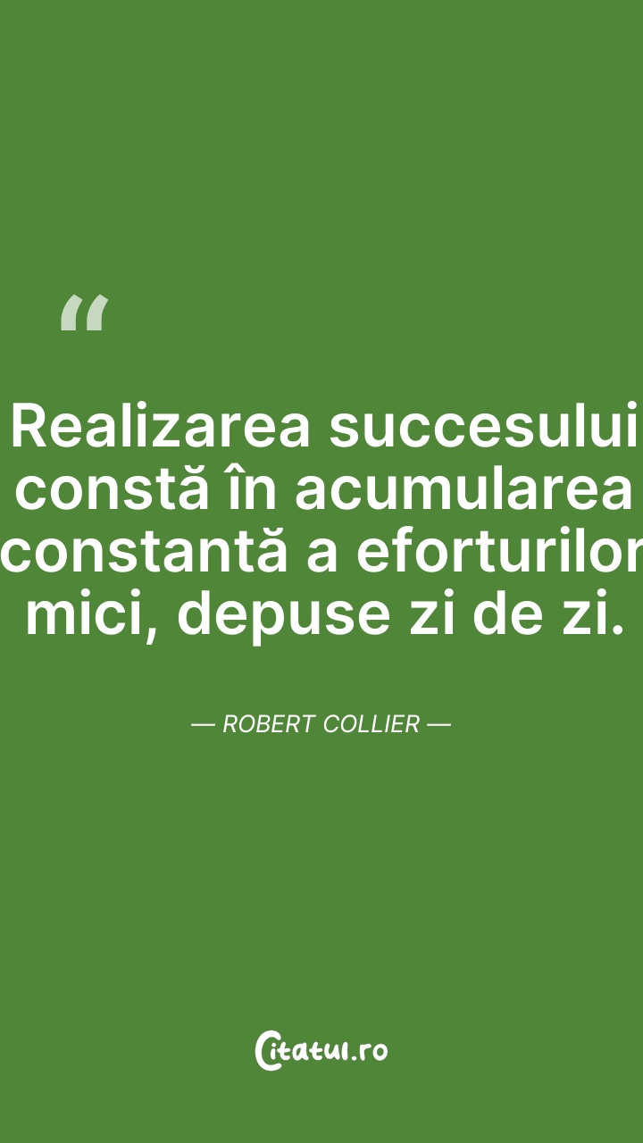 Succesul este suma eforturilor mici, repetate ... Citește tot citatul >