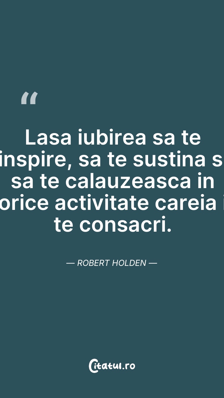 Lasa iubirea sa te inspire, sa te sustina si ... Citește tot citatul >