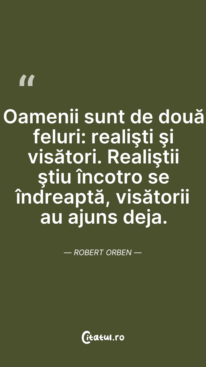 Oamenii sunt de două feluri: realişti şi visă ... Citește tot citatul >