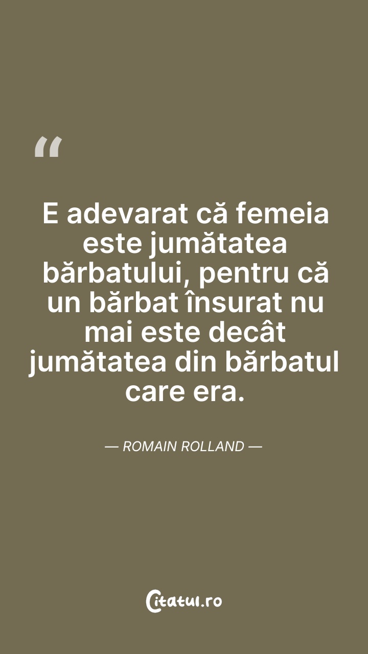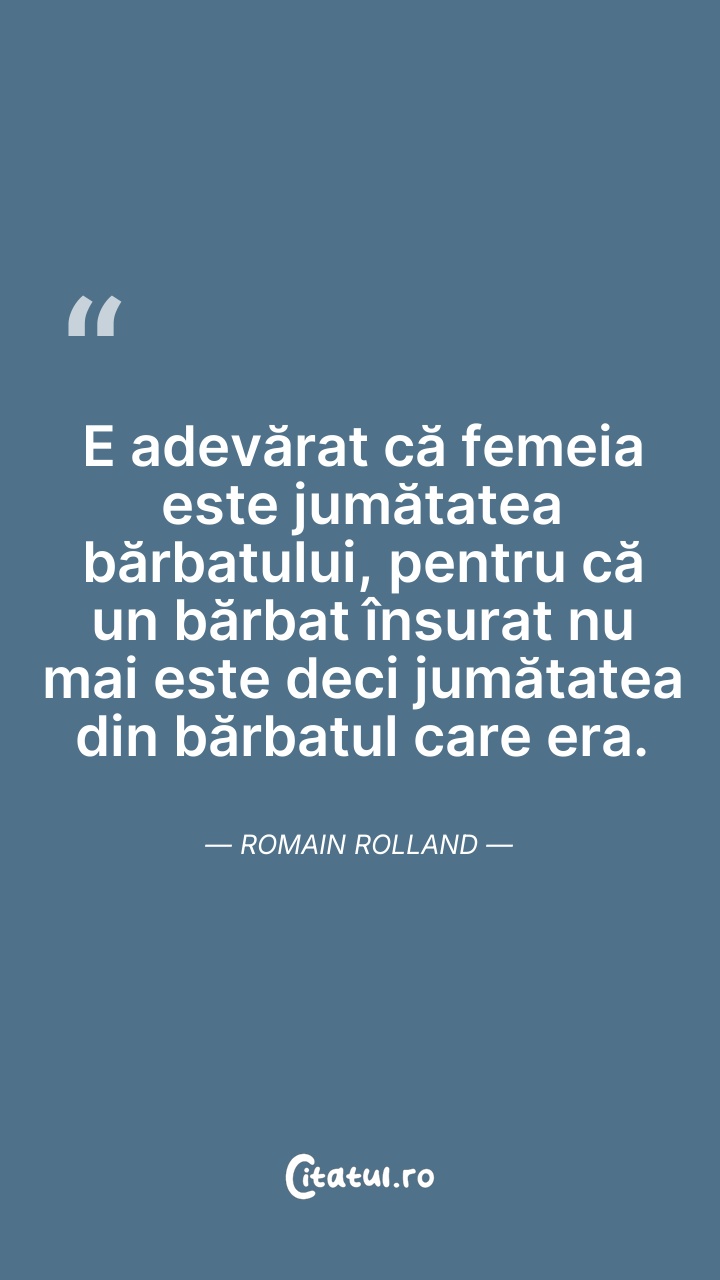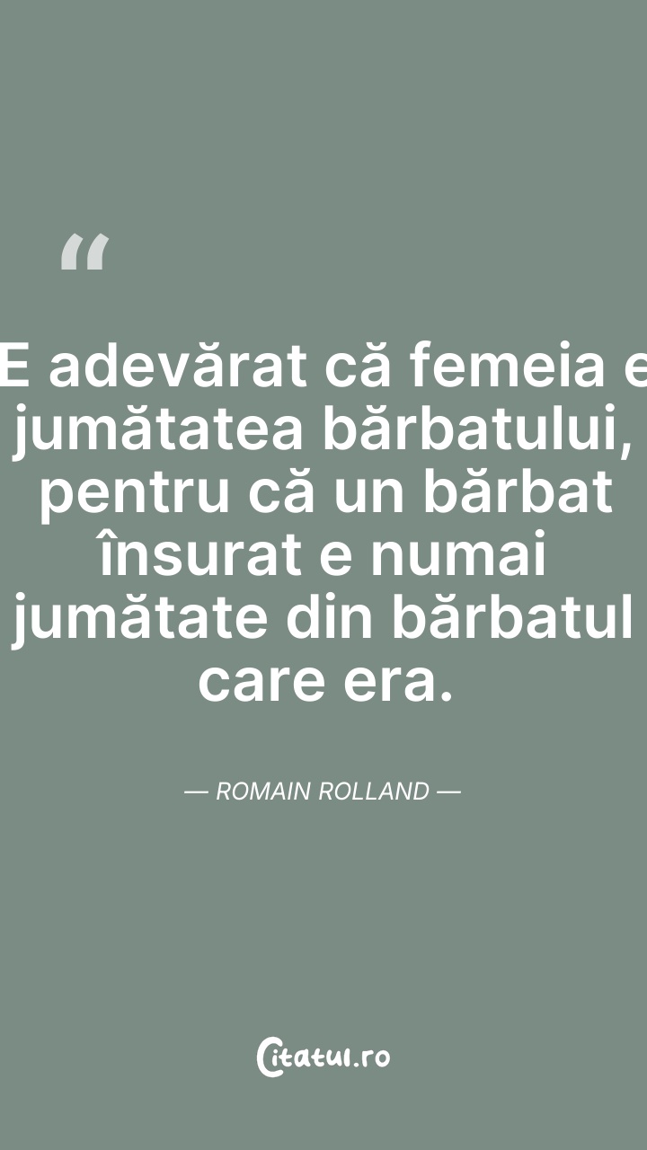 E adevărat că femeia e jumătatea bărbatului, ... Citește tot citatul >