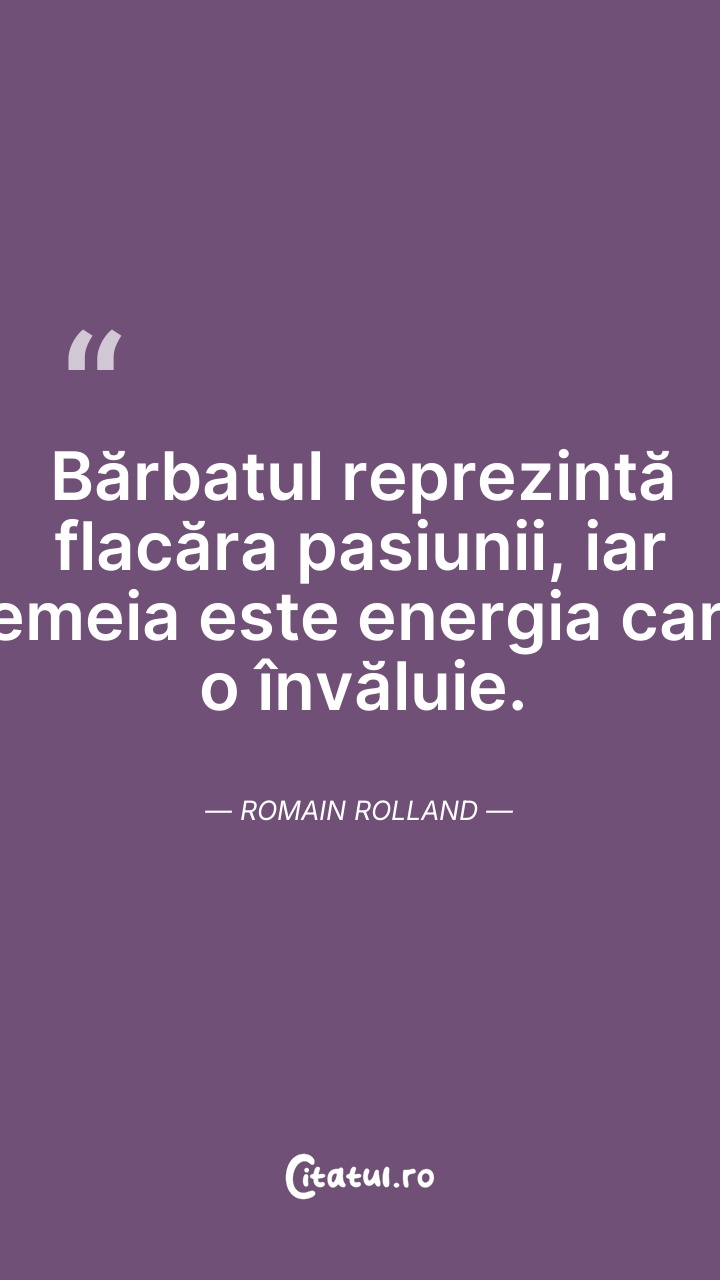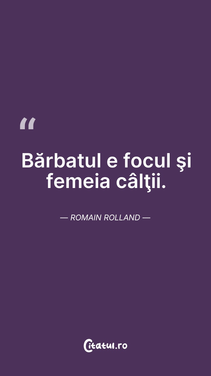 Bărbatul e focul şi femeia câlţii. Romain Rol ... Citește tot citatul >