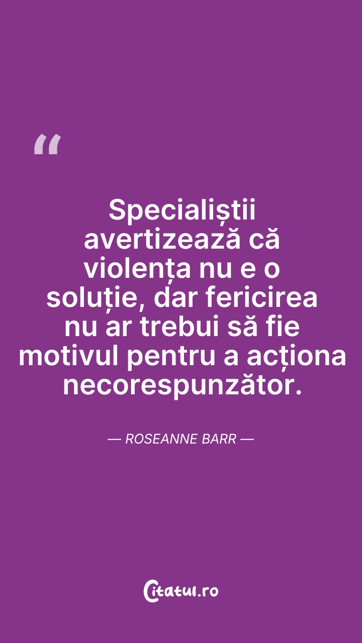 Specialiștii avertizează că violența nu e o s ... Citește tot citatul >