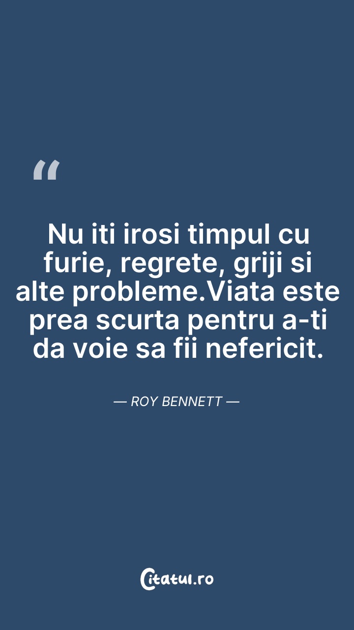 Nu iti irosi timpul cu furie, regrete, griji ... Citește tot citatul >