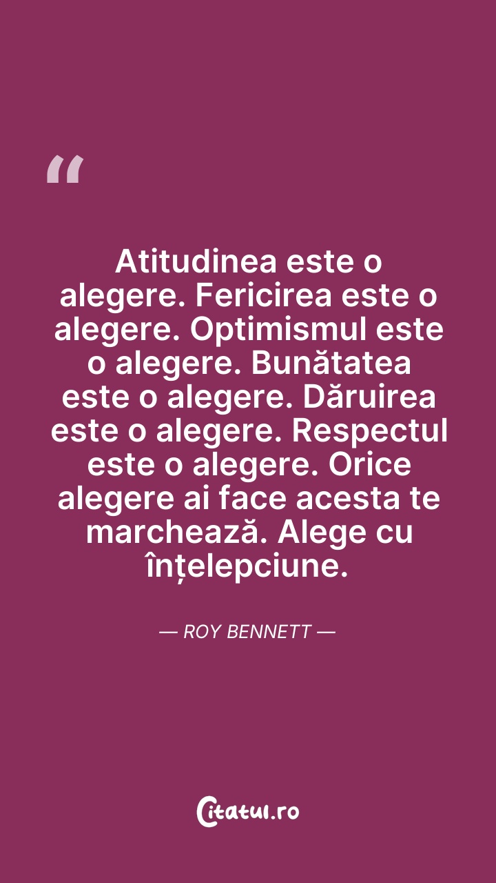 Atitudinea este o alegere. Fericirea este o a ... Citește tot citatul >