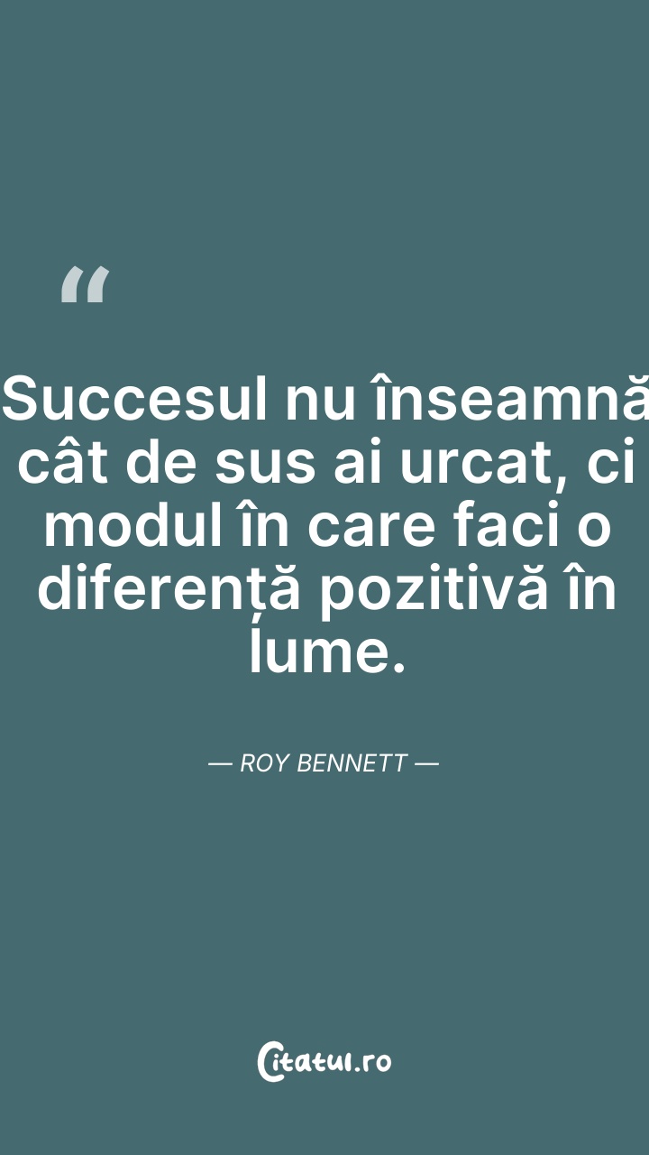 Succesul nu înseamnă cât de sus urci, ci cum ... Citește tot citatul >