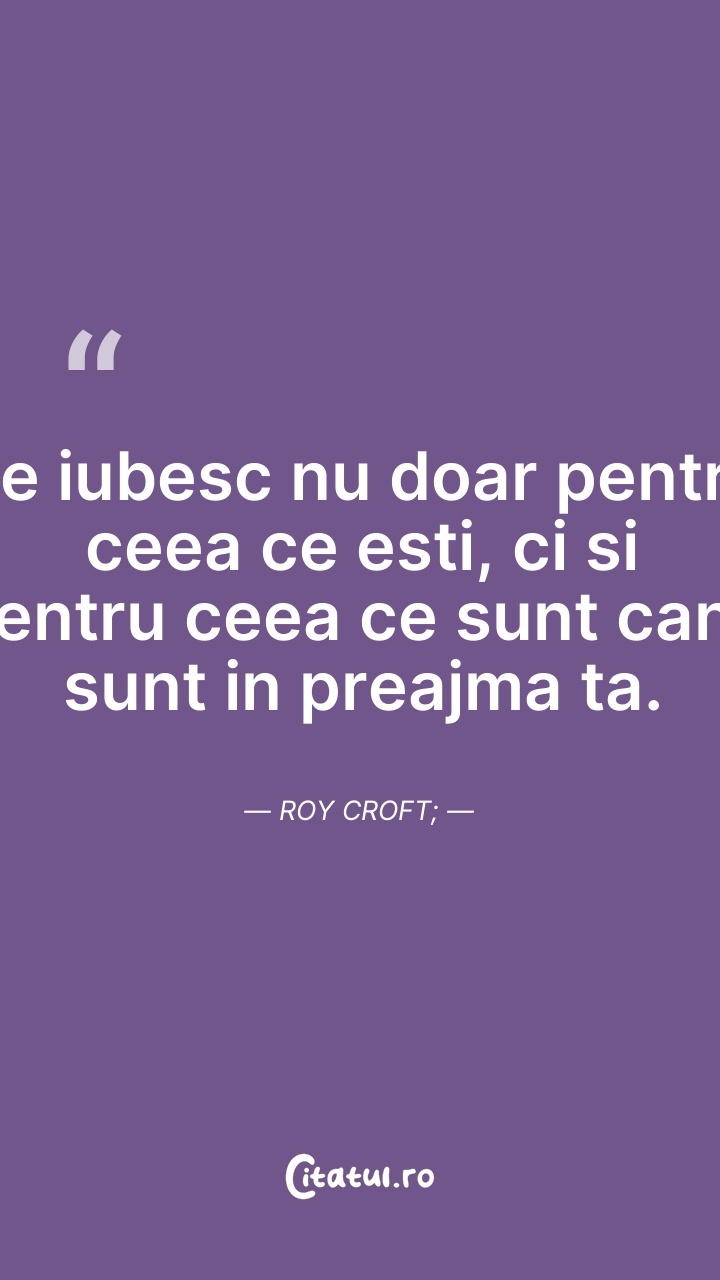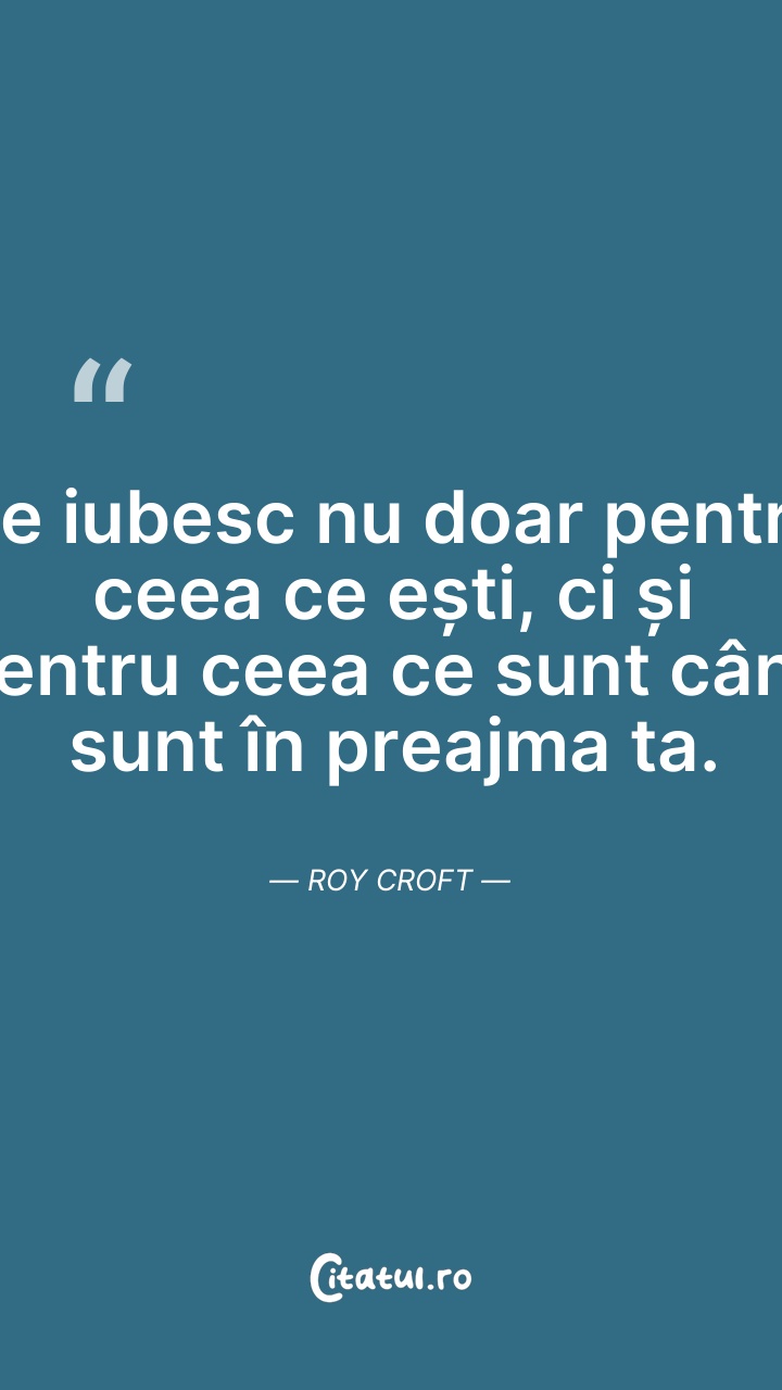 Te iubesc nu doar pentru ceea ce ești, ci și ... Citește tot citatul >