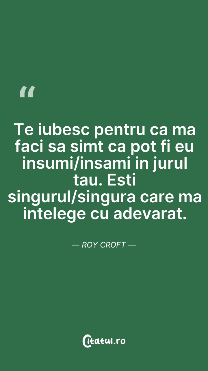 Te iubesc pentru ca ma faci sa simt ca pot fi ... Citește tot citatul >