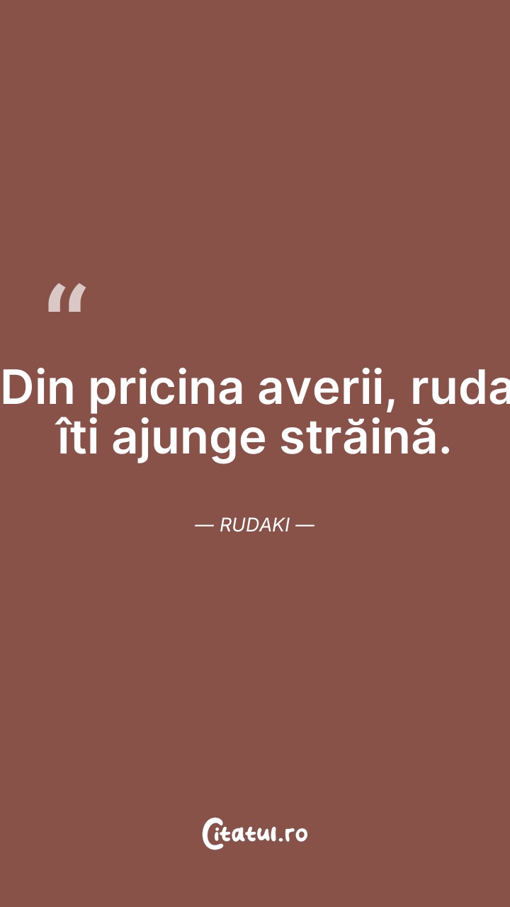 Din pricina averii, ruda îti ajunge străină. ... Citește tot citatul >
