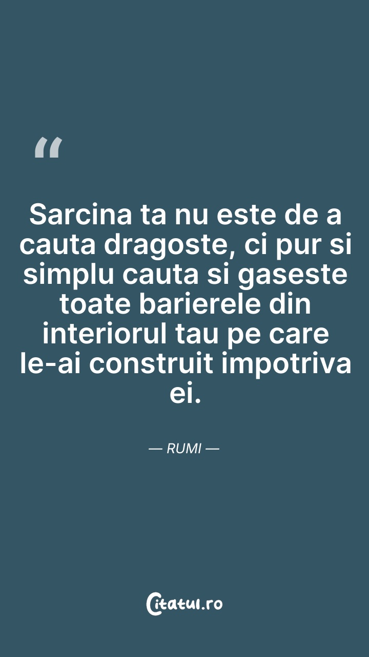 Sarcina ta nu este de a cauta dragoste, ci pu ... Citește tot citatul >