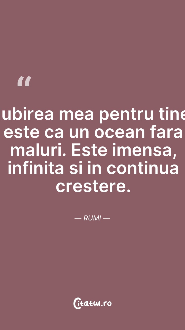 Iubirea mea pentru tine este ca un ocean fara ... Citește tot citatul >