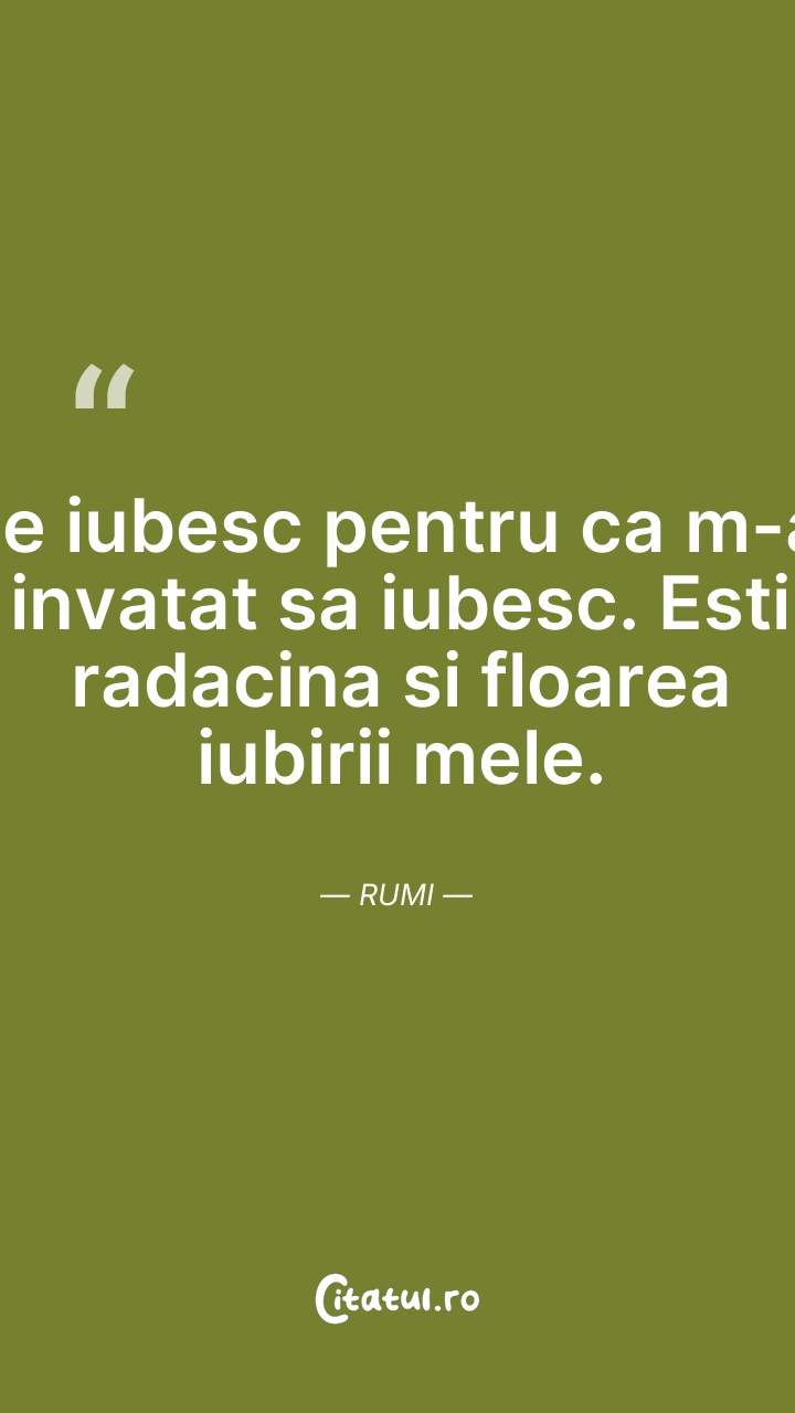 Te iubesc pentru ca m-ai invatat sa iubesc. E ... Citește tot citatul >