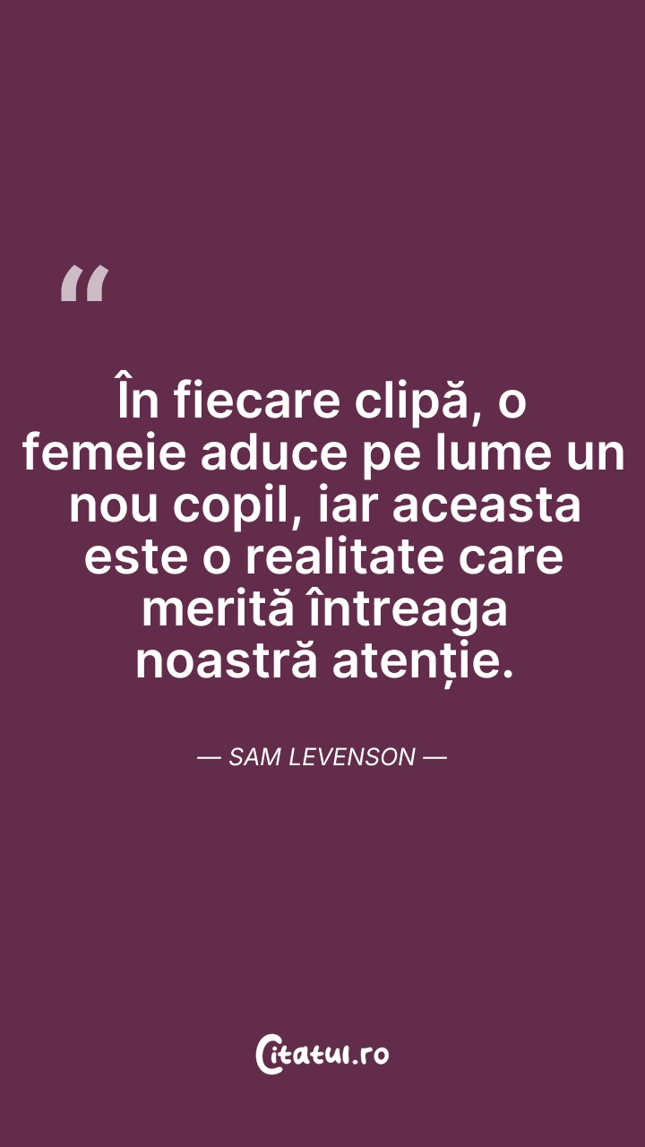 În fiecare clipă, o femeie aduce pe lume un n ... Citește tot citatul >