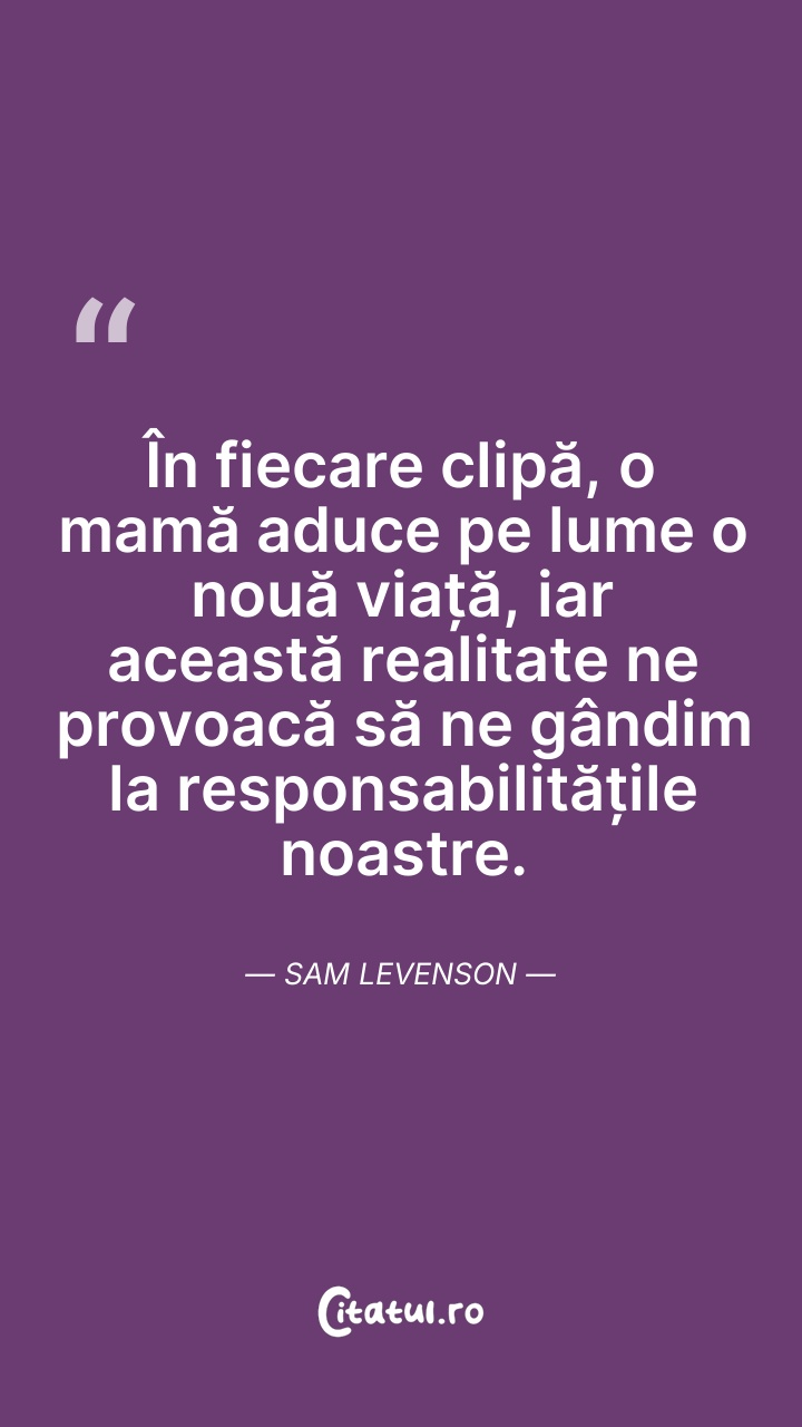 În fiecare clipă, o mamă aduce pe lume o nouă ... Citește tot citatul >