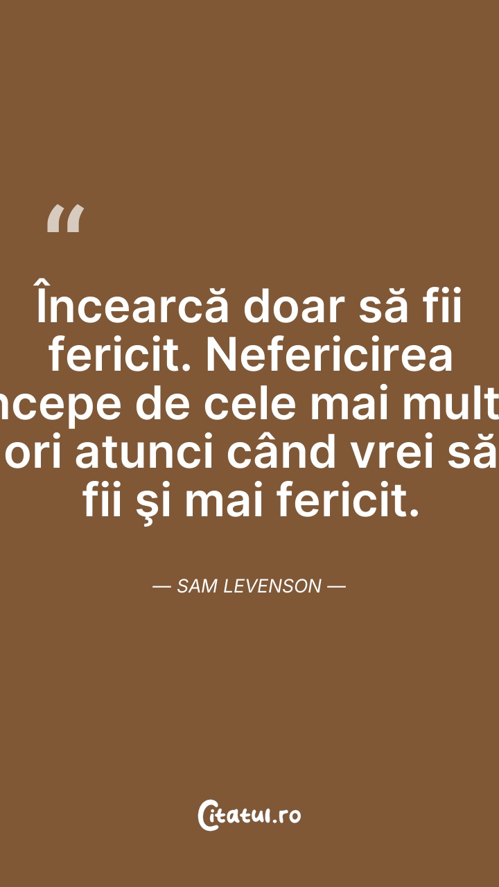 Încearcă doar să fii fericit. Nefericirea înc ... Citește tot citatul >