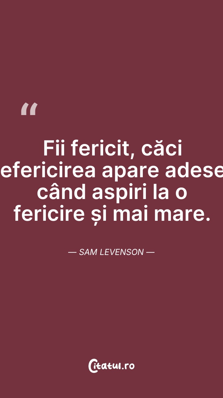Fii fericit, căci nefericirea apare adesea câ ... Citește tot citatul >