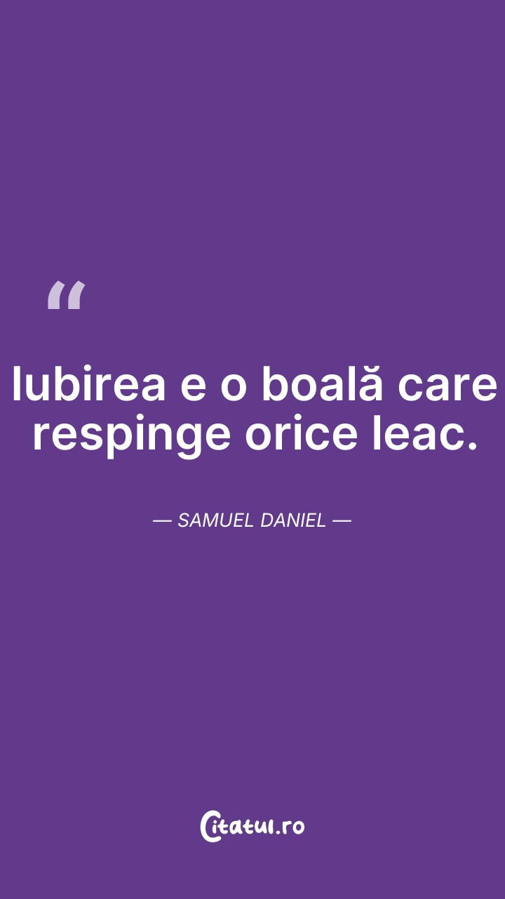 Iubirea e o boală care respinge orice leac. S ... Citește tot citatul >