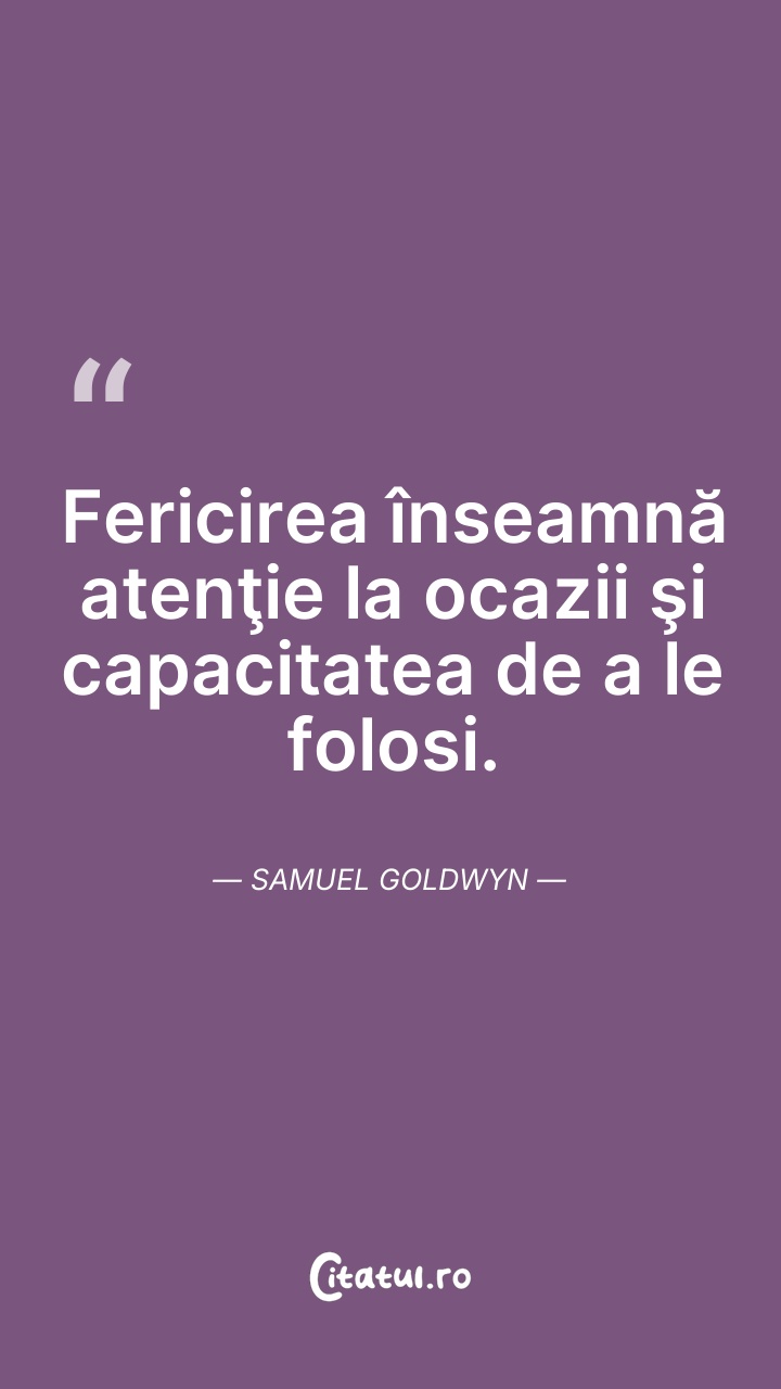 Fericirea înseamnă atenţie la ocazii şi capac ... Citește tot citatul >