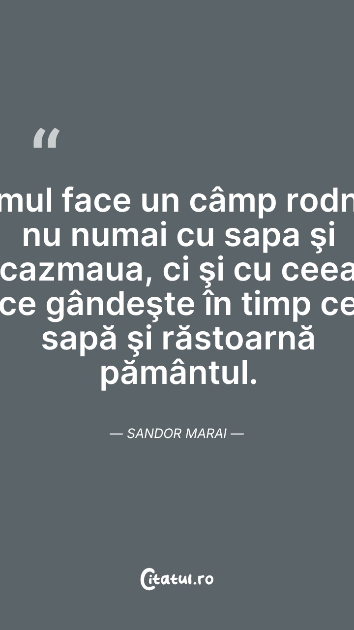 Omul face un câmp rodnic nu numai cu sapa şi ... Citește tot citatul >