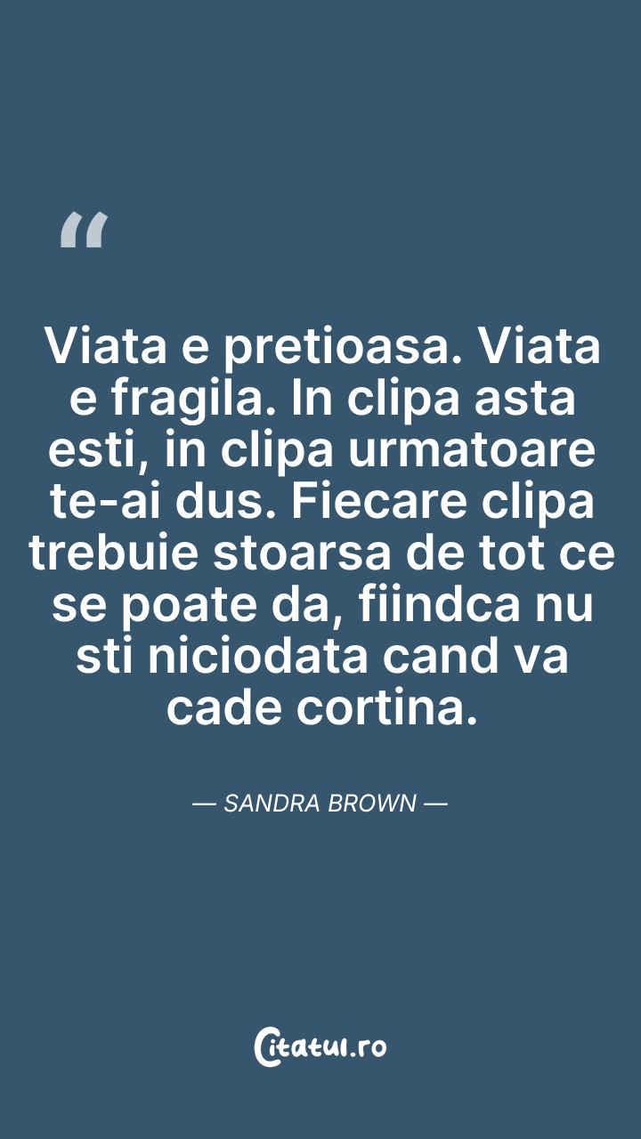 Viata e pretioasa. Viata e fragila. In clipa ... Citește tot citatul >