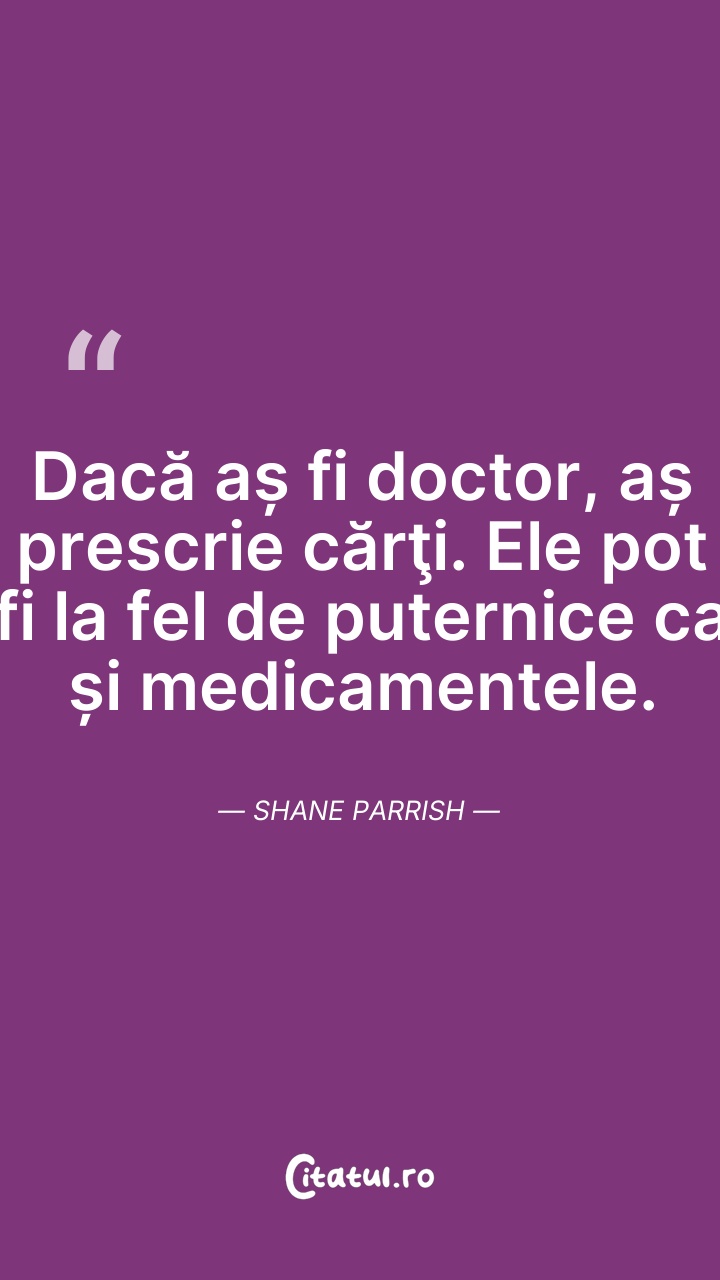 Dacă aș fi doctor, aș prescrie cărţi. Ele pot ... Citește tot citatul >