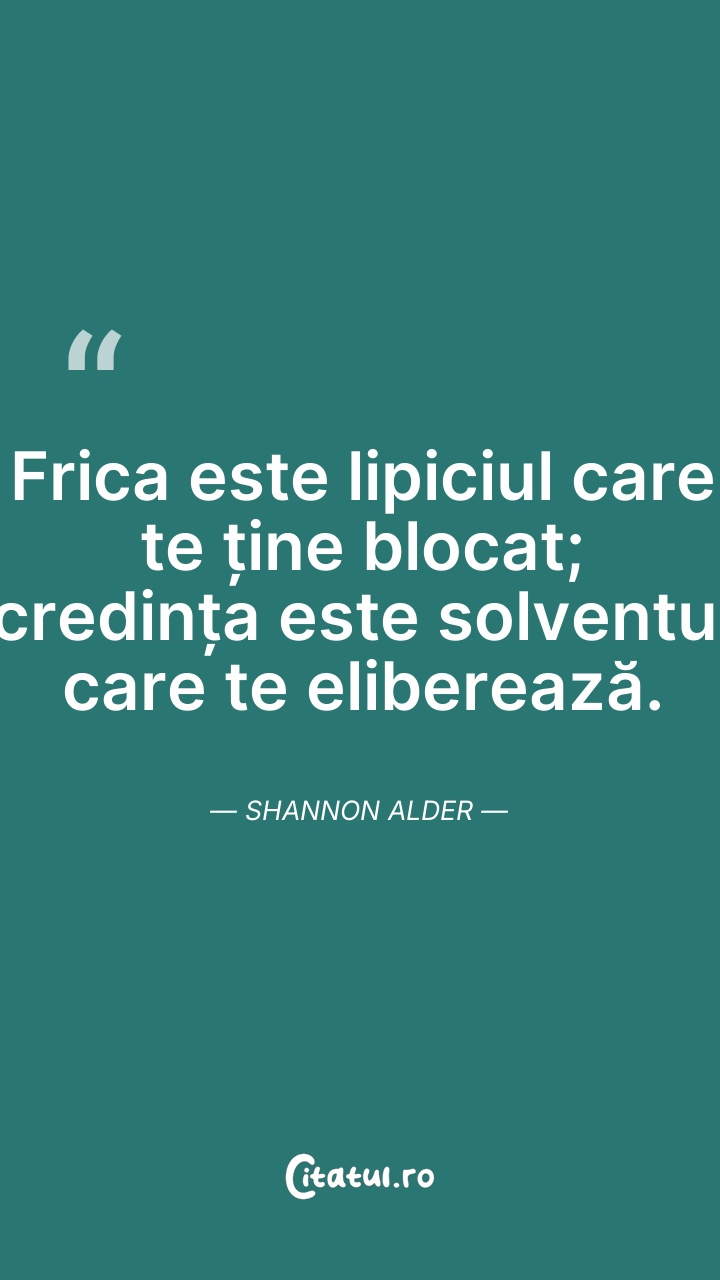 Frica este lipiciul care te ține blocat; cred ... Citește tot citatul >