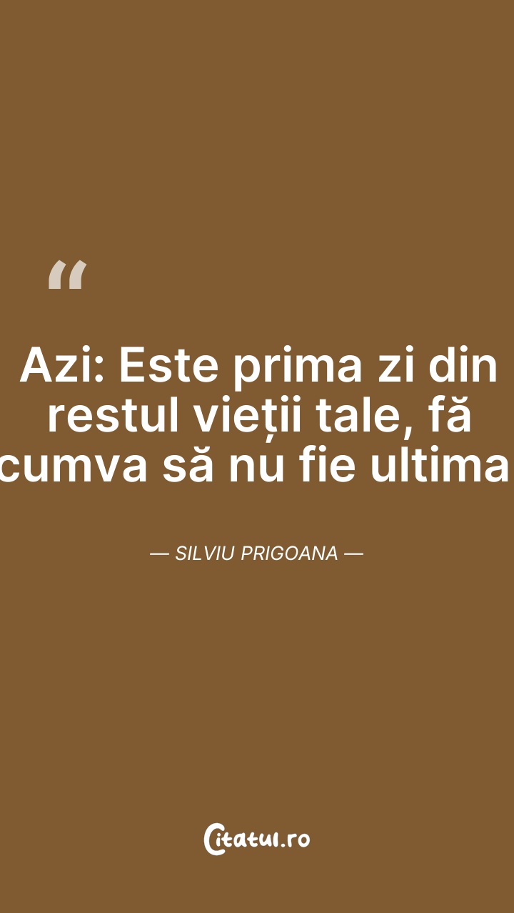 Azi: Este prima zi din restul vieții tale, fă ... Citește tot citatul >