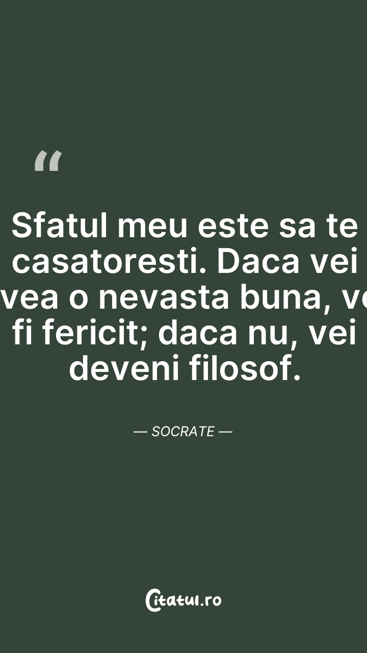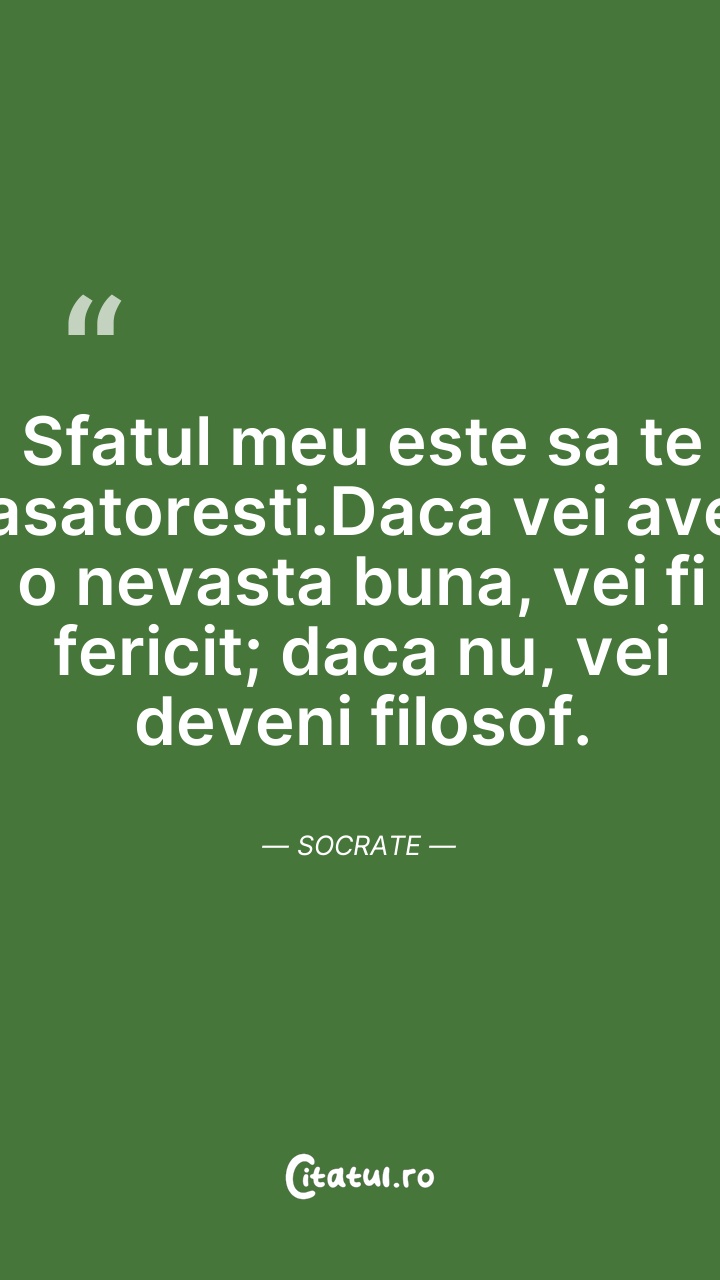Sfatul meu este sa te casatoresti.Daca vei av ... Citește tot citatul >