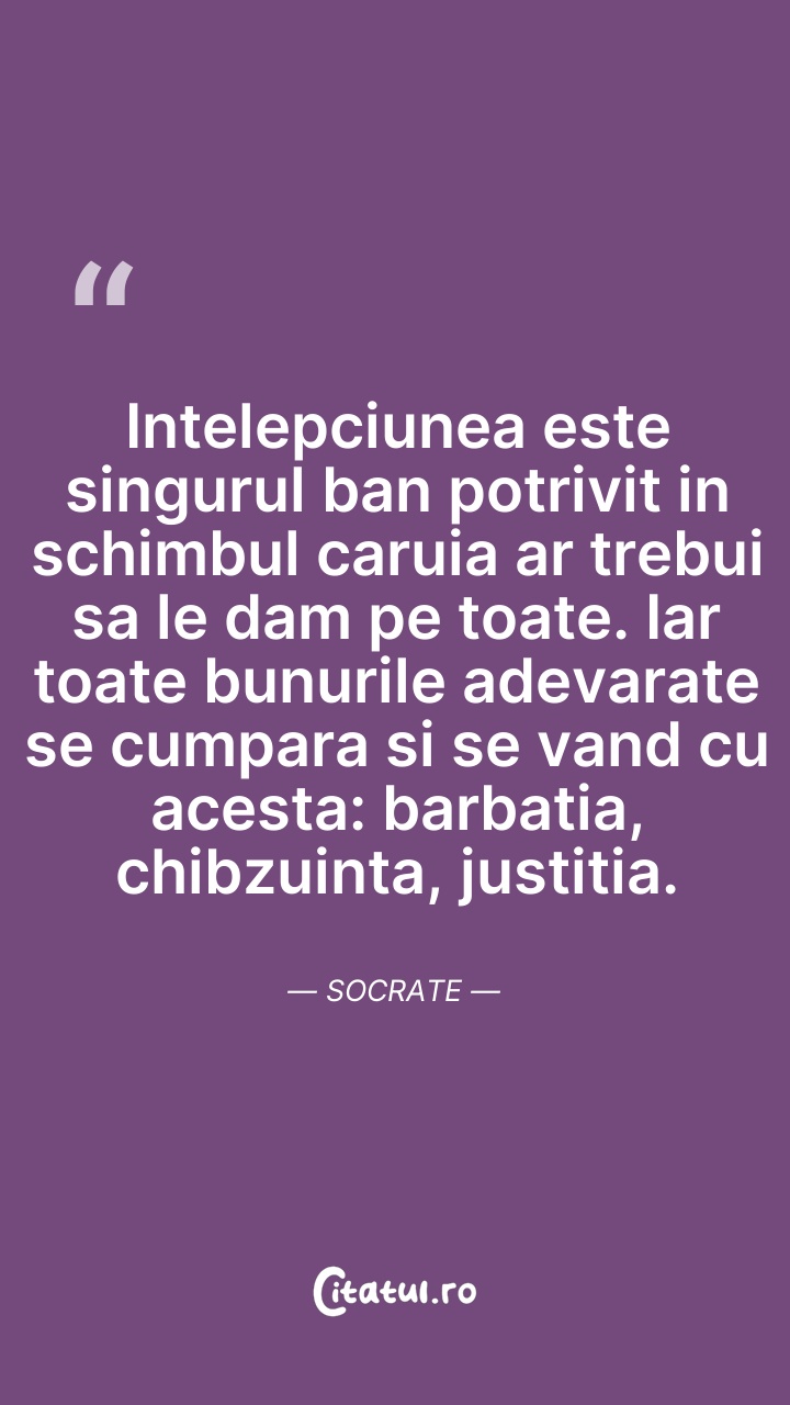 Intelepciunea este singurul ban potrivit in s ... Citește tot citatul >