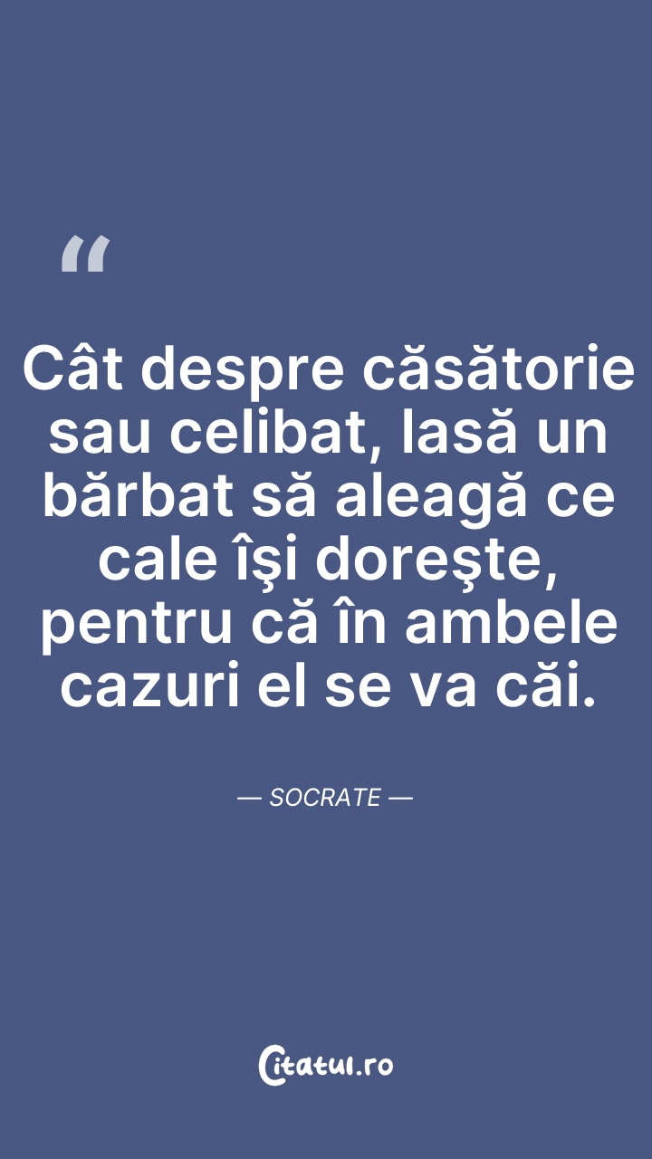 Cât despre căsătorie sau celibat, lasă un băr ... Citește tot citatul >