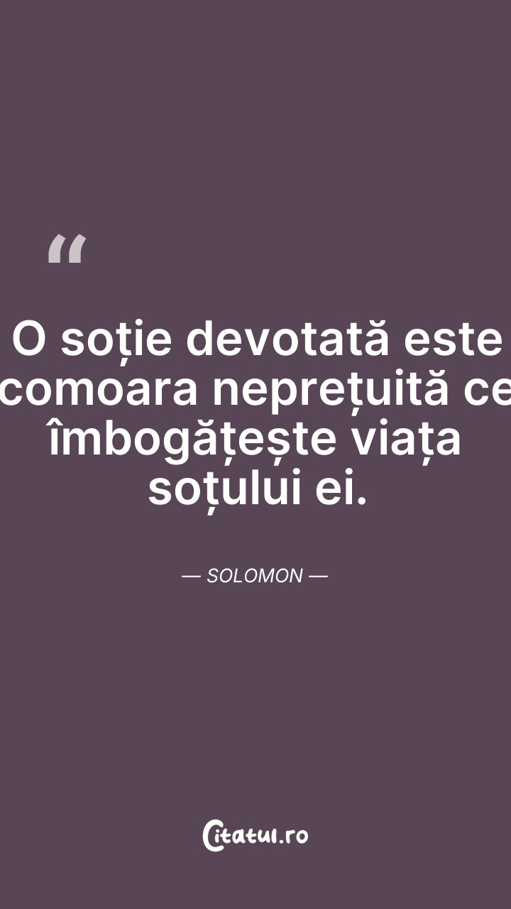 O soție devotată este comoara neprețuită pe c ... Citește tot citatul >